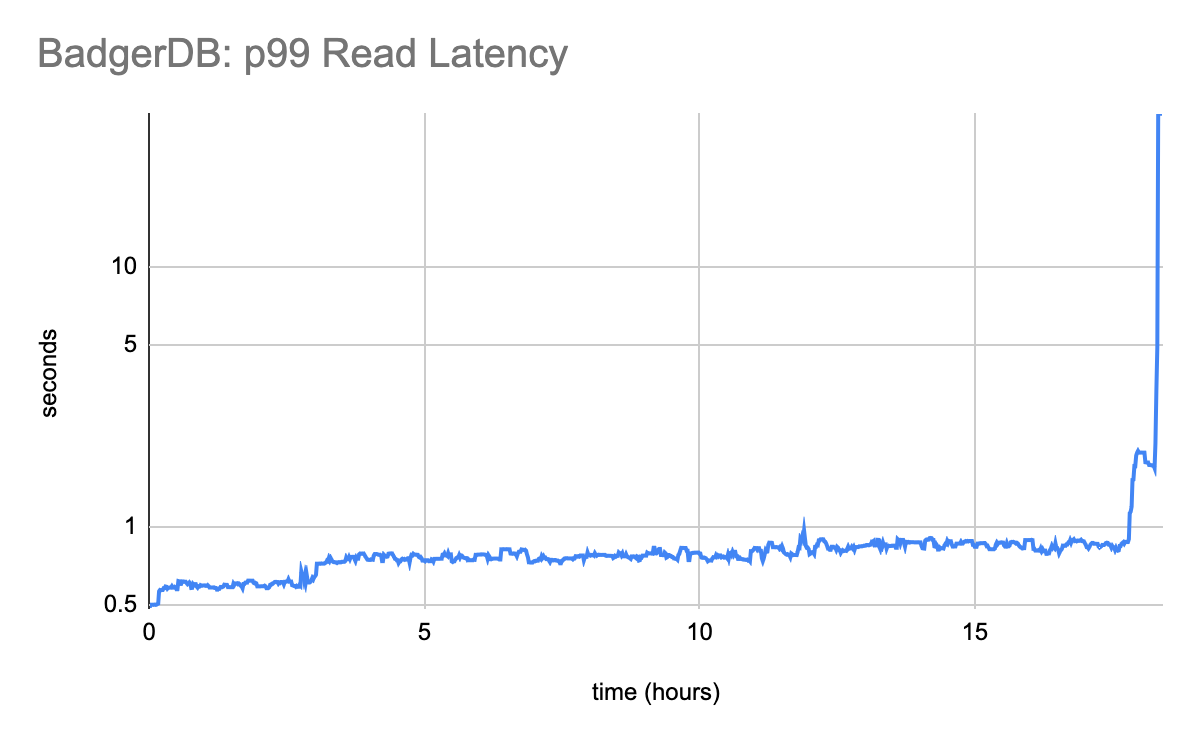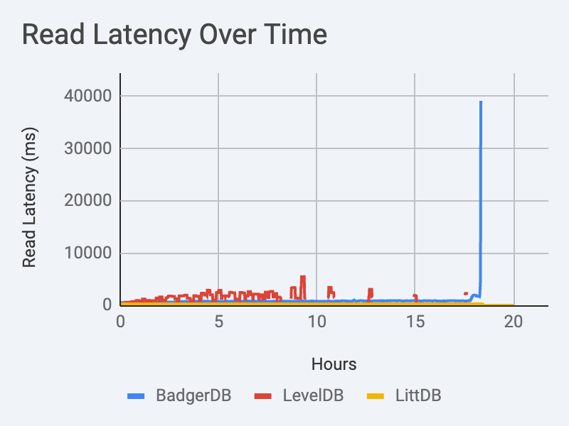 Although it’s a lot better than LevelDB, BadgerDB’s read latency leaves a lot to be desired.