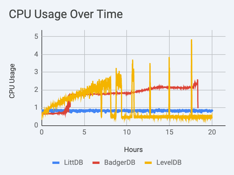 LittDB’s CPU usage is highly stable.