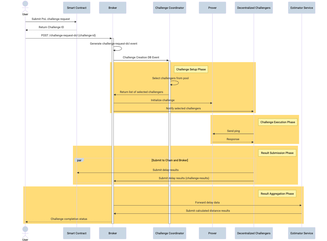 - Challenge Coordinator: Currently centralized, this service manages communication, coordinates challenges, and interfaces with the blockchain ledger.