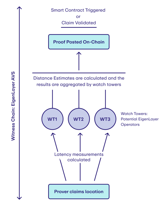 - Watchtowers: Decentralized validators with known locations that conduct latency measurements.